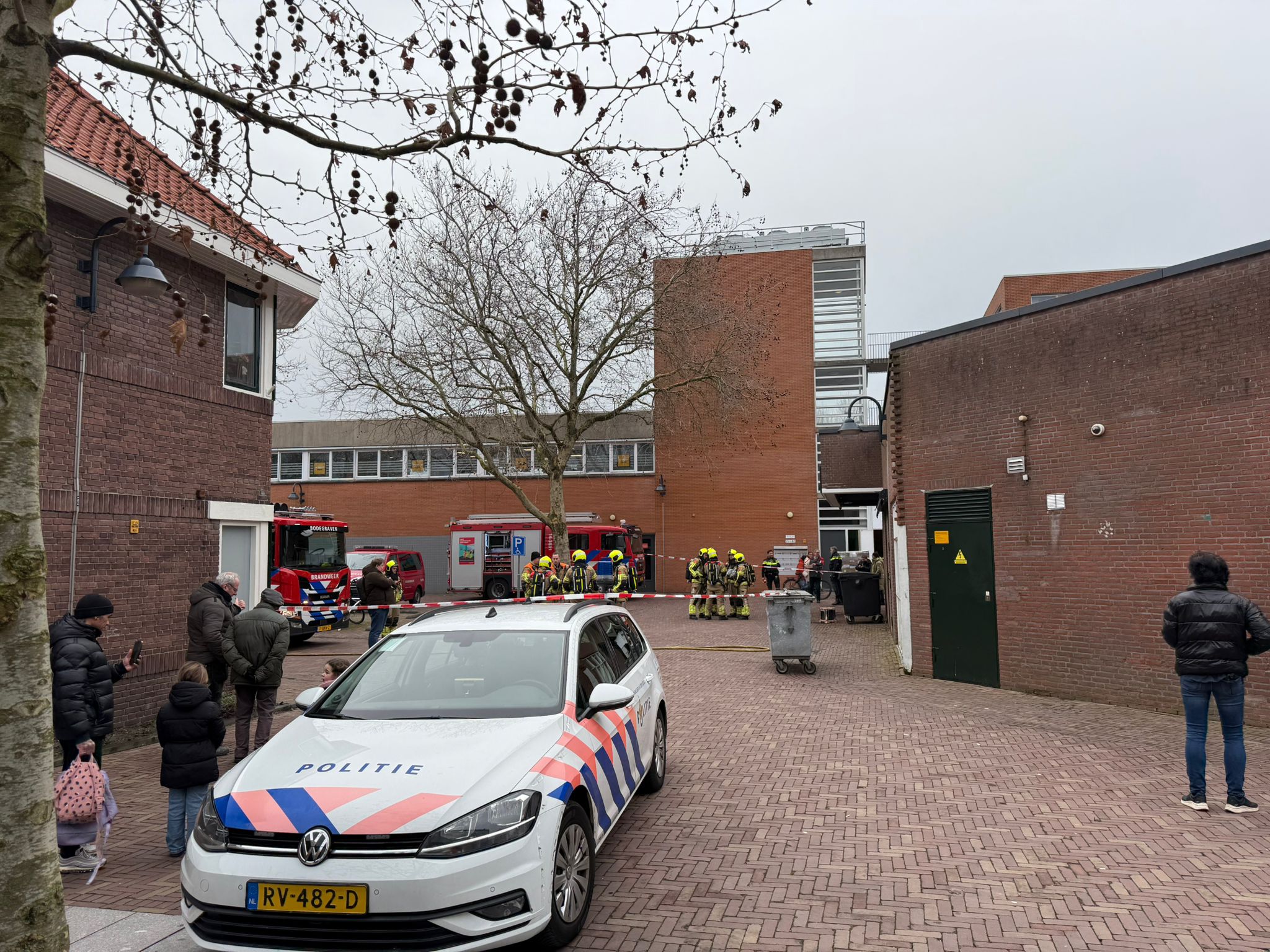De politie heeft het gebied afgezet om veilig te kunnen werken. Veel omstanders kwamen een kijkje nemen bij het incident. In het transformatorhuisje is geen brand zichtbaar, maar uit voorzorg kwamen de hulpdiensten ter plaatse voor controle.